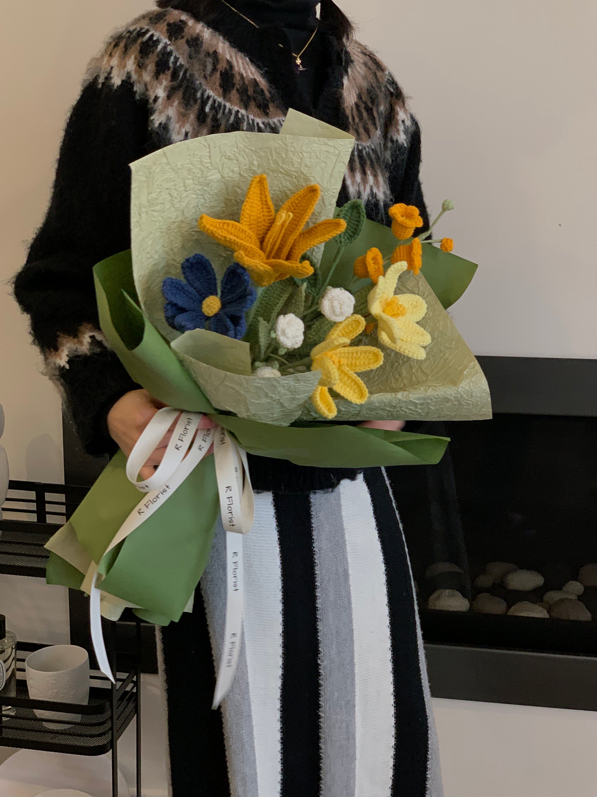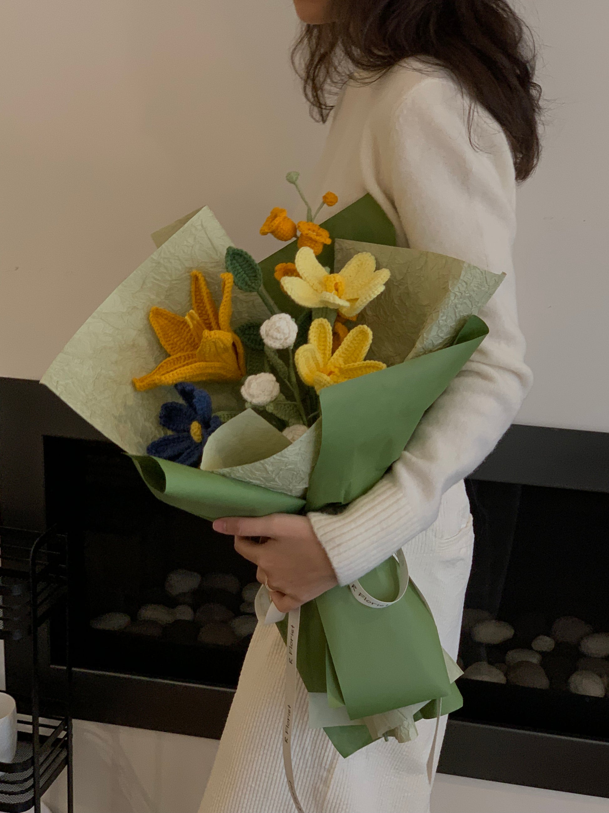 - Due to stock limits, 1-2 crocheted flowers might be out of stock and will be substituted by similar crocheted flowers. We will ensure the altered bouquet remains 80% of its original design.